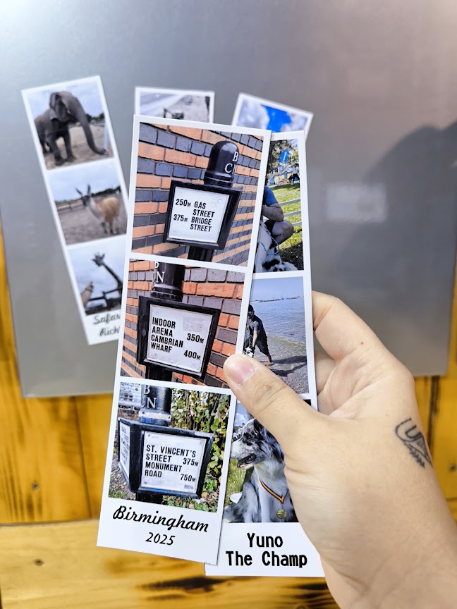 Designul vertical îți permite să păstrezi mai multe amintiri într-un singur magnet, iar spațiul alb de sub poze este ideal pentru un mesaj scurt, o dată sau un nume.